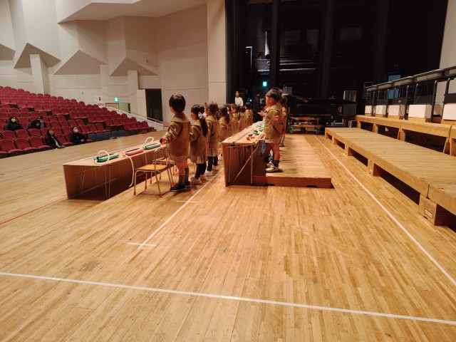 用具や楽器の置き場所、子どもたちの立ち位置を確認しながら進めていきました。