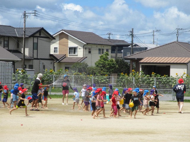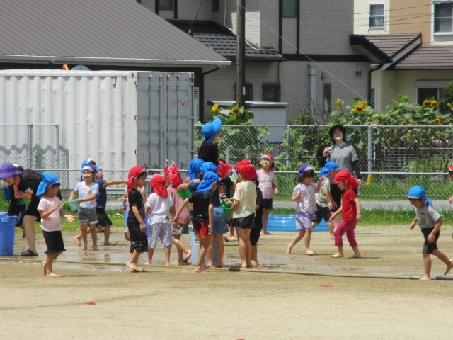 雨で延期になっていた水遊びが、7月に入りやっと取り組むことができました